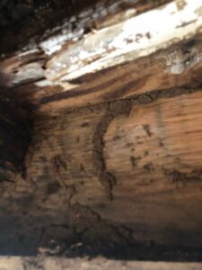 シロアリは木材の内部を食べ進めるため、外見はそのままでも中が空洞化していることがあります。そのため、柱や床板を軽く叩くと「ポコポコ」といった空洞音がするのが特徴です。